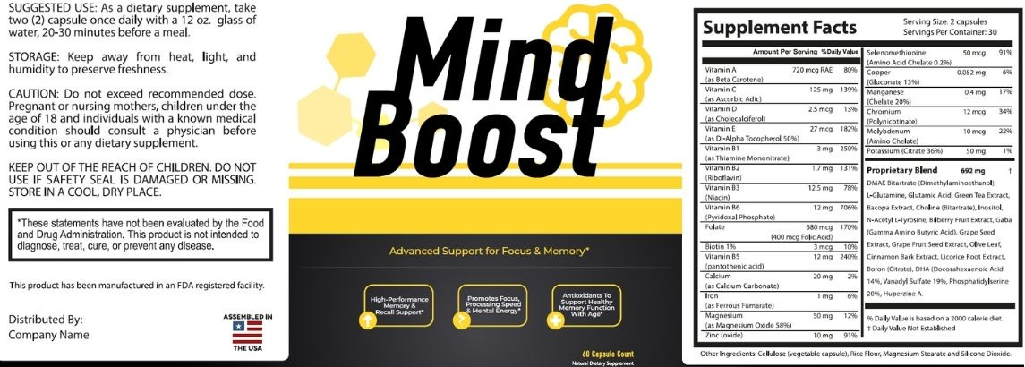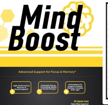 Mind Boost is a natural dietary supplement designed to support memory, focus, and overall brain health using a blend of carefully selected ingredients.